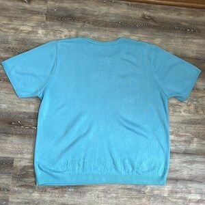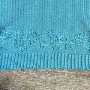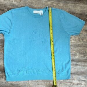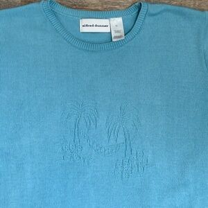 Alfred Dunner Women's XL Summer Sweater Teal Blue Palm Trees Tropical Minimalist