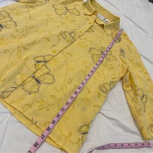Alfred Dunner Women's Yellow Butterfly Embossed Button Up 3/4 Sleeves Size 14