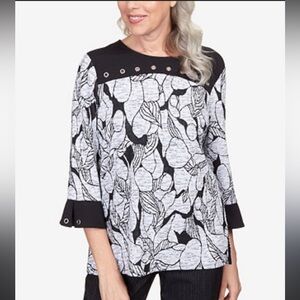 Alfred Dunner XL Women's Geometric Embellished Neckline Top, Shirt, Bell Sleeve