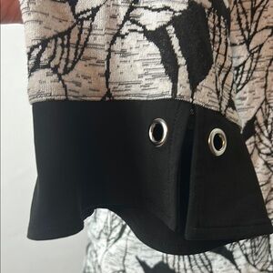 The Alfred Dunner XL Women's Geometric Embellished Neckline Top is a stylish and versatile shirt perfect for various occasions such as travel, casual wear, and work. This top features a beaded geometric pattern on the neckline, a pullover closure, and 3/4 bell sleeves. Made from a knit fabric blend of polyester and spandex, this top offers a comfortable fit with a touch of stretch. The black and white color scheme and classic style make it a timeless addition to any woman's wardrobe. Easy to care for with machine washable instructions, this top is a practical and fashionable choice for everyday wear.