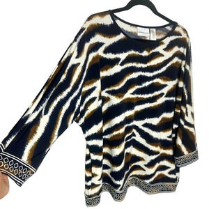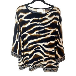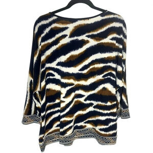 Alfred Dunner XL black brown white animal print dolman sleeve top