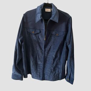 Alfred Dunner Zip Up Jacket Womens 16 Blue Corduroy Long Sleeve Collared NWT