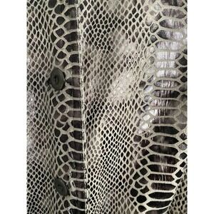 This Alfred Dunner women's jacket is a stylish addition to your wardrobe. The animal print pattern in brown and creme gives it a unique and trendy look. The jacket features metal buttons for accents and has pockets for convenience. It has long sleeves and a button closure, making it suitable for various occasions including travel, party/cocktail, casual, workwear, and business. This plus-sized jacket is made of polyester and is machine washable. The lining material is also polyester, and the fabric type is polyester. The jacket is perfect for the fall and spring seasons, and the snake skin theme adds an element of sophistication.