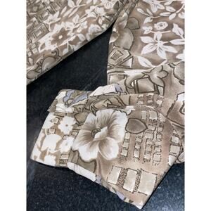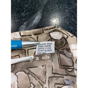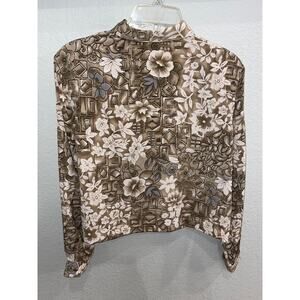 Measurements: Pit to Pit 22.5”. Back side collar to back side hem is 19.5”. This is a short and boxy silhouette, you might even call it cropped. I can see this would be so cute paired with mom jeans!. Taupe and blue with white floral design.