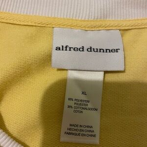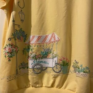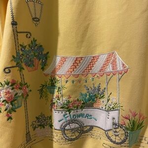 EUC-like new. Maybe worn once or twice. Size X-large Alfred Dunner yellow short sleeve top with a flower cart done up with some beaded bling. Super cute for the flower lover/gardner. Armpit to armpit 22 1/2” and centerback length 25 1/2”. Tote 17.