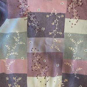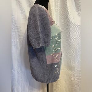 Alfred Dunner multicolor embroidered beaded accent short sleeve sweater medium