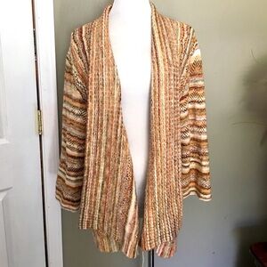 Alfred Dunner open front cardigan. Sz L. Fall colors, long sleeves, large lapel.