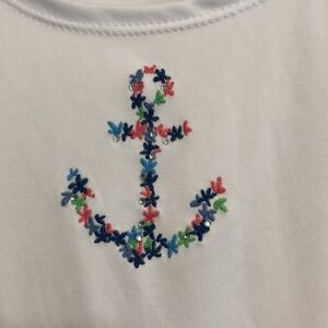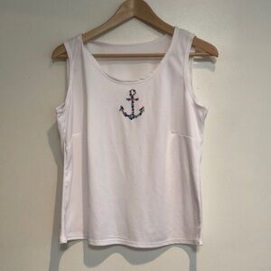 Two piece set - tank top with embroidered anchor and rhinestones, and button up on top