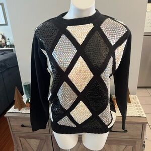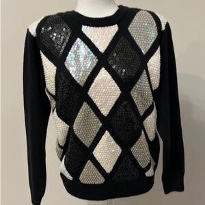Alfred Dunner petite 80s 90s black grey and white sequins vintage sweater