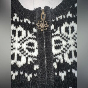 Alfred Dunner petite, S, fair Isle ice skaters zip front, long sleeve cardigan
