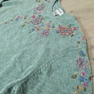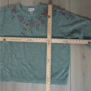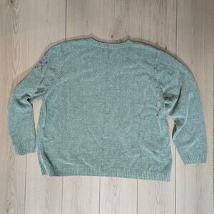 Alfred Dunner size 3X embroidered floral pale teal/ robin egg mint green sweater