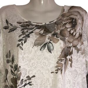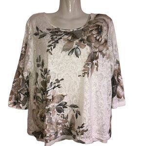 Alfred Dunner top Size PL floral burnout lined round neckline metallic highlight