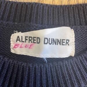 Alfred Dunner blue sweater with bold floral pattern has shoulder pads. Lovingly worn and in good used condition.