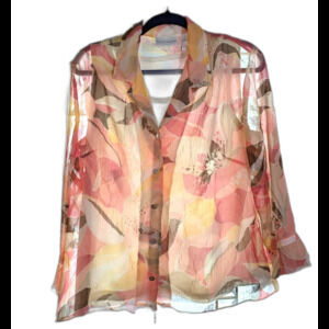 Elevate your wardrobe with this stunning Alfred Dunner floral blouse. The V-neckline and classic fitted sleeves add a touch of sophistication to this tunic-style top. The multicolor floral pattern is perfect for any occasion and the polyester material provides comfort and durability. This preowned top is a must-have for any fashion-forward woman who wants to make a statement. It is suitable for women of size 12 and is a regular fit. Add this beautiful item to your collection and experience the elegance and style of Alfred Dunner.