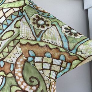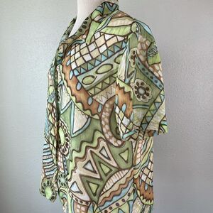 Great design and colors on the classic button down top by Alfred Dunner. It measures 23 inches armpit to armpit lying flat and 23 inches in length from shoulder to hem.