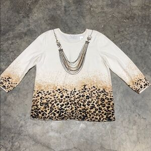 Alfred Dunner 3/4 Sleeve Leopard Sweater Small