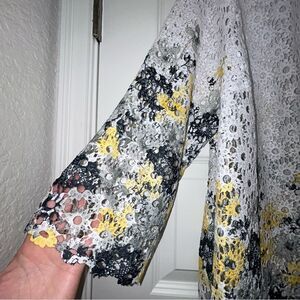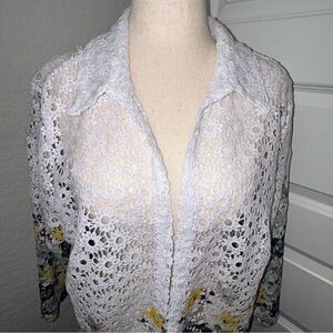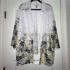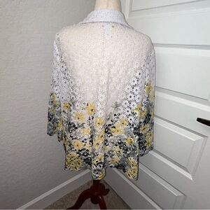Alfred Dunner Floral Ombre Watercolor Print Crochet Open Front Cardigan