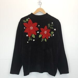Alfred Dunner / Holiday Sweater / Christmas Sweater / Holiday party / Ugly Sweater / Poinsettia / Floral / Vintage / Vintage Sweater