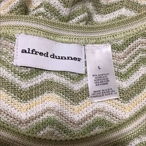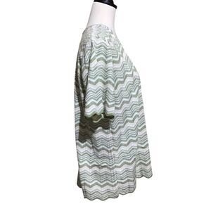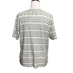 Alfred Dunner Short Sleeve Green Chevron Striped Thin Knit Sweater L