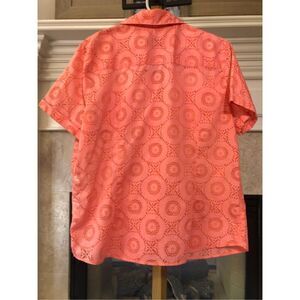Alfred Dunner Women’s Light Coral Pink Floral Print Short Sleeve Collared Button Up Blouse Size 14 Preowned in very good condition