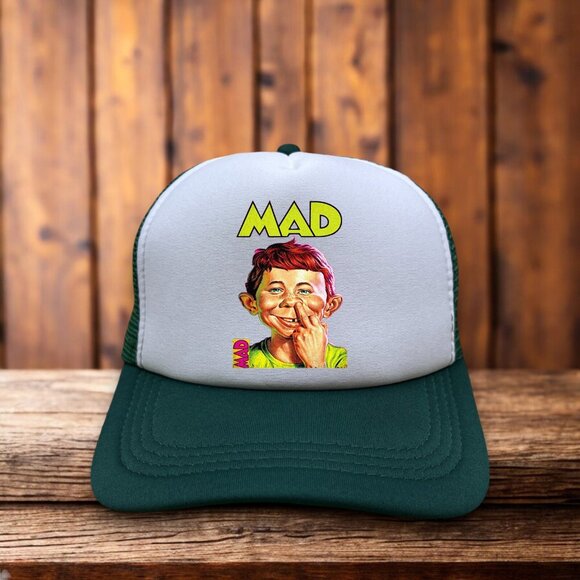 Alfred E. Neuman Mad Magazine Mens Trucker Hat Green Vintage Logo Baseball Cap