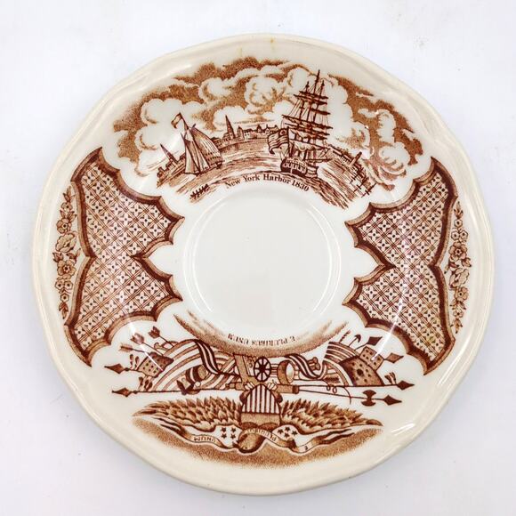 Alfred Meakin Fair Winds White & Brown 5" Plate. Features art of New York Harbor in 1830. Made in Staffordshire, England.