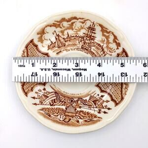 Alfred Meakin Fair Winds White Brown 5" Plate New York Harbor 1830 Staffordshire