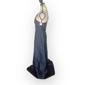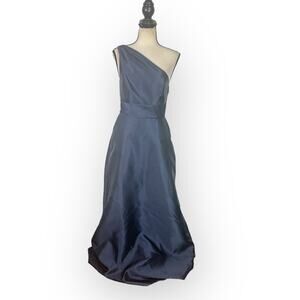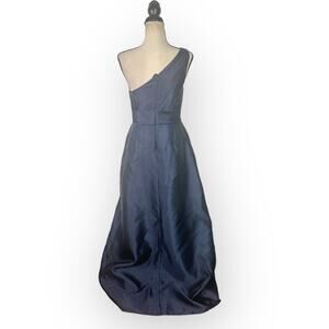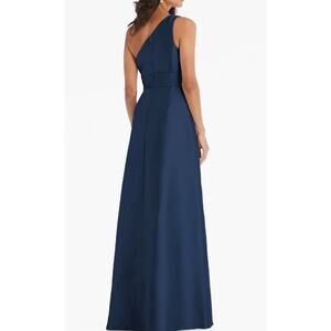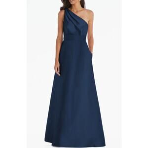 Alfred Sung A-Line Gown Women's 2R Navy Blue One-Shoulder Maxi Draped D815S NWT