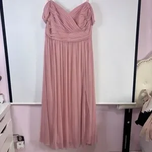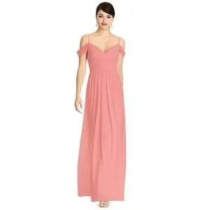 Alfred Sung Chiffon Bridesmaid Maxi Dress Off Shoulder Pink Size 24 D743