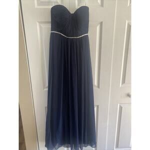 Alfred Sung Chiffon strapless midnight navy formal dress size 2 prom wedding NEW