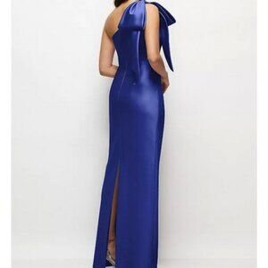 Alfred Sung Cobalt Blue Bow One-Shoulder Satin Column Gown D861
