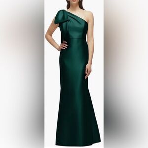 Alfred Sung D737 Jersey Bodice Mikado Trumpet Gown 10 Midnight Blue No Belt