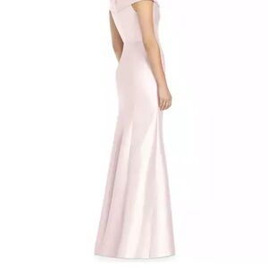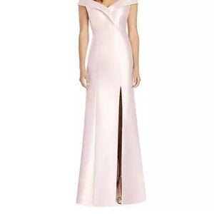 Alfred Sung D760 Off-The-Shoulder Satin Gown in Blush with Slit Size 0 NEW