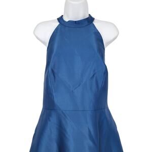 Alfred Sung D772 High Neck Cutout Satin Sleeveless Twill Dress Dusk Blue Size 14