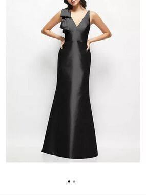 Alfred Sung D823 Midnight Navy Blue Bow Back Trumpet Maxi Gown Dress 16R