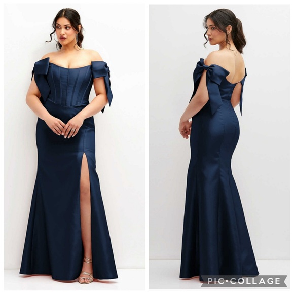 Alfred Sung D854 Bow Off The Shoulder Corset Gown Midnight Navy 12