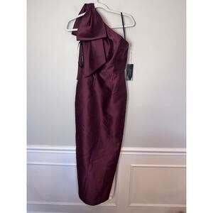 Alfred Sung D861 Bow One Shoulder Column Gown Cabernet Red 2 NWT $269