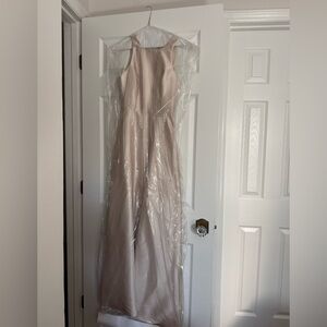 Elegant cream evening gown by . Perfect for formal occasions with its sleek and sophisticated design. Bridesmaid dress, worn once! Has pockets! Unaltered