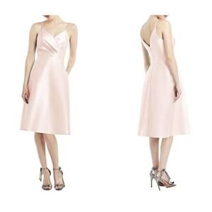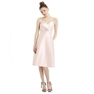 Alfred Sung Draped Faux Wrap Sateen Cocktail Dress V-Neck Blush Size 14 NWT