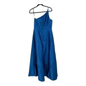 Alfred Sung Dress D831 One Shoulder satin gown blue size 12 F0132