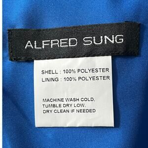 Alfred Sung Dress D831 One Shoulder satin gown blue size 12