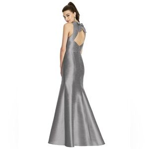 Alfred Sung Dupioni Bow-Back Trumpet Gown D734 Quarry