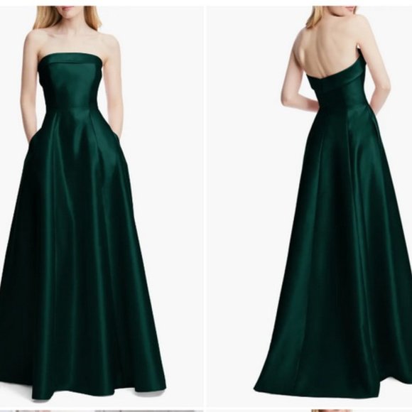 Alfred Sung Evergreen Strapless Cuff Satin Gown Size D843