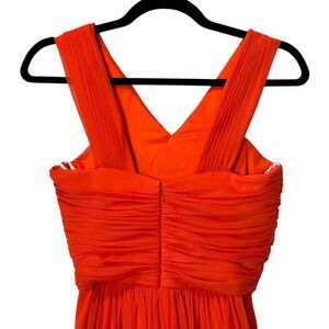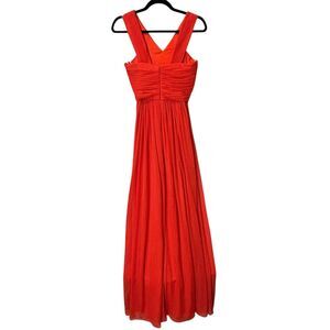 Alfred Sung Full Length Chiffon V-Neck Dress Tangerine Tango D678 Women's 2 NWT