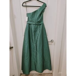 Alfred Sung Green Gown With Draped One-shoulder and Pockets