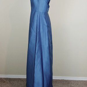 Alfred Sung Halter Neck Gown Dress Women's Size 18 Dusk Blue Satin Twill D772