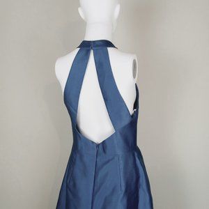 Alfred Sung satin twill halter neck dress with pockets in Dusk Blue (Style D772)