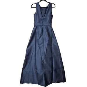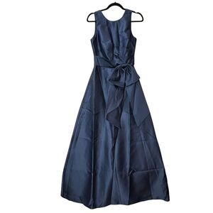 Alfred Sung High Neck Bow-Waist Maxi Dress Pocket D803S Midnight Women's 4R NWOT