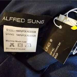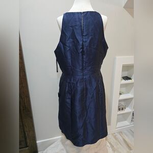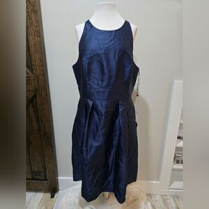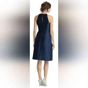 Alfred Sung High-Neck Satin Cocktail Dress With Pockets D769 NWT sz 18 Navy Blue