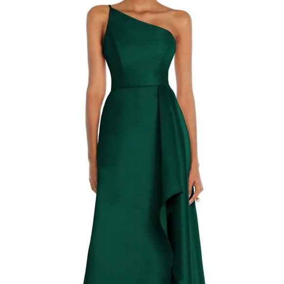 Alfred Sung Hunter Green One-Shoulder Satin Gown D831